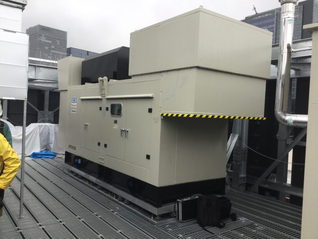 発電機と燃料タンク等も納入した案件となりました。ここでは発電機をビルの屋上に、燃料タンクを屋上と地上に配置しました。地上でタンクローリー車から地上の燃料タンクに燃料を受けて、屋上の燃料タンクに移送。そこから発電機に燃料を供給しました。